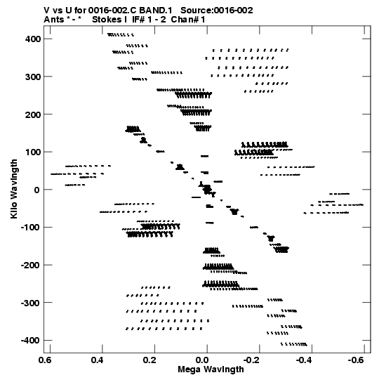 • Links is a collection of links that will show you the GIF uv-coverage and visibility plot for this data set in pop-up windows. See the README file on how to interpret these plots. They'll also get you to the project pipelining scripts and information log files as well as the full multi-source archive data on this project.
