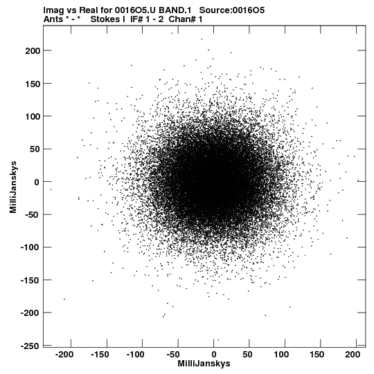 angle, the approximate noise level in prefixed units of Jansky, and a