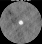 • JPEG shows a thumbnail of the pipeline image. Clicking it will show you a larger version in the browser. Both JPEG images have a square transfer function to emphasize the lower levels a bit more; do not use the JPEGs for scientific purposes (see next). As a guideline, the lighter a thumbnail, the less difference between the peak flux density and the rms noise level, i.e., don't expect to see too much in in light gray images, especially if the rms noise given in the next column is in the order of microJy or less. On the other hand, dark images have a strong source in there somewhere.. (try looking in the center of the image).