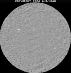 • JPEG shows a thumbnail of the pipeline image. Clicking it will show you a larger version in the browser. Both JPEG images have a square transfer function to emphasize the lower levels a bit more; do not use the JPEGs for scientific purposes (see next). As a guideline, the lighter a thumbnail, the less difference between the peak flux density and the rms noise level, i.e., don't expect to see too much in in light gray images, especially if the rms noise given in the next column is in the order of microJy or less. On the other hand, dark images have a strong source in there somewhere.. (try looking in the center of the image).