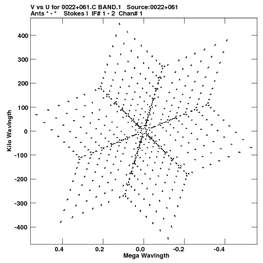 • Links is a collection of links that will show you the GIF uv-coverage and visibility plot for this data set in pop-up windows. See the README file on how to interpret these plots. They'll also get you to the project pipelining scripts and information log files as well as the full multi-source archive data on this project.