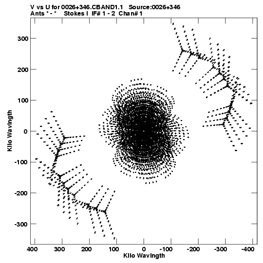 • Links is a collection of links that will show you the GIF uv-coverage and visibility plot for this data set in pop-up windows. See the README file on how to interpret these plots. They'll also get you to the project pipelining scripts and information log files as well as the full multi-source archive data on this project.