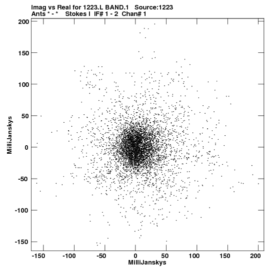 angle, the approximate noise level in prefixed units of Jansky, and a