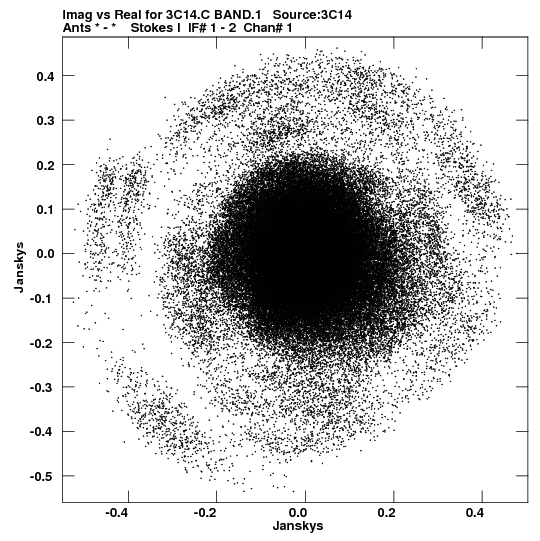 angle, the approximate noise level in prefixed units of Jansky, and a