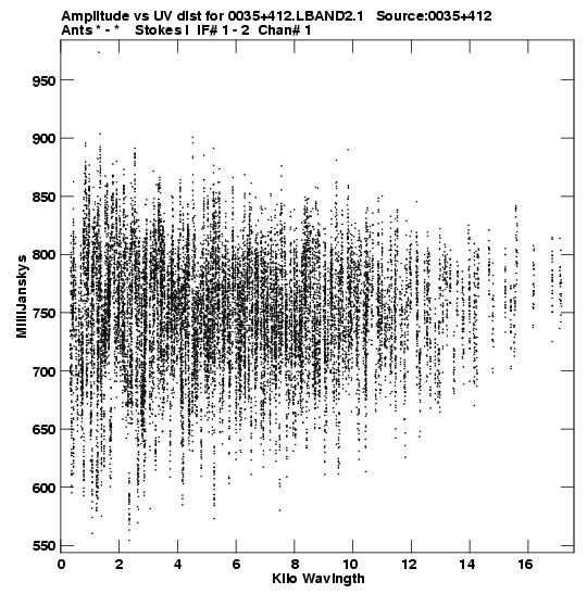 angle, the approximate noise level in prefixed units of Jansky, and a
