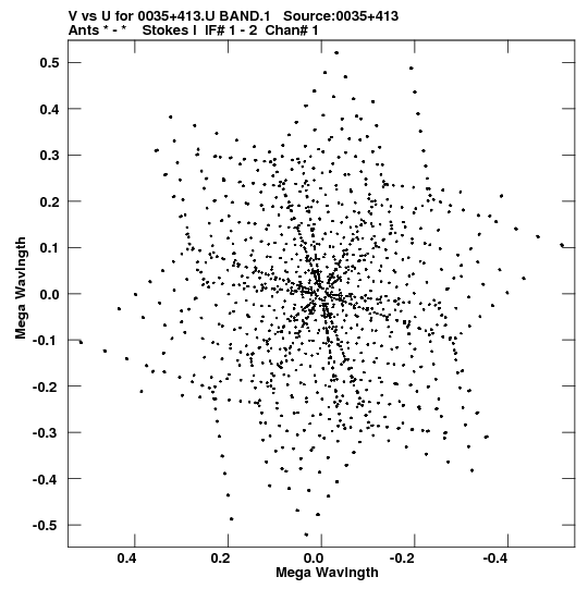 • Links is a collection of links that will show you the GIF uv-coverage and visibility plot for this data set in pop-up windows. See the README file on how to interpret these plots. They'll also get you to the project pipelining scripts and information log files as well as the full multi-source archive data on this project.