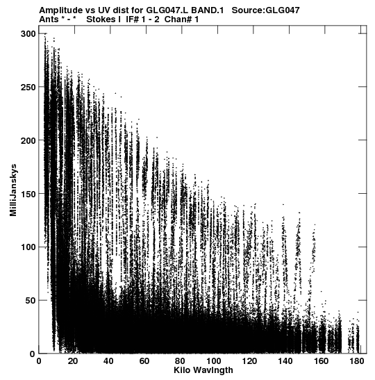 • Links is a collection of links that will show you the GIF uv-coverage and visibility plot for this data set in pop-up windows. See the README file on how to interpret these plots. They'll also get you to the project pipelining scripts and information log files as well as the full multi-source archive data on this project.