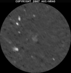 angle, the approximate noise level in prefixed units of Jansky, and a