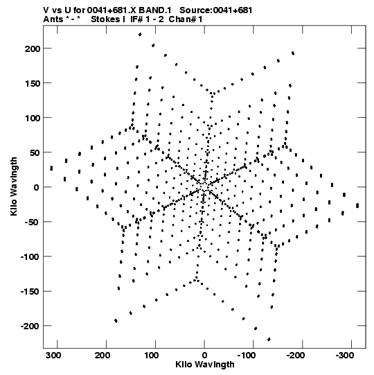 • Links is a collection of links that will show you the GIF uv-coverage and visibility plot for this data set in pop-up windows. See the README file on how to interpret these plots. They'll also get you to the project pipelining scripts and information log files as well as the full multi-source archive data on this project.
