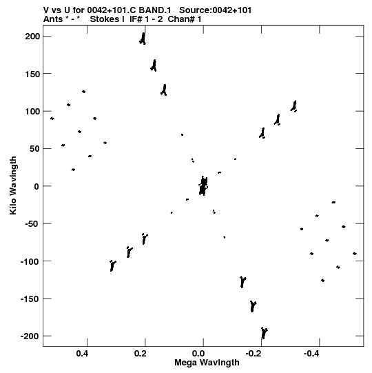 • Links is a collection of links that will show you the GIF uv-coverage and visibility plot for this data set in pop-up windows. See the README file on how to interpret these plots. They'll also get you to the project pipelining scripts and information log files as well as the full multi-source archive data on this project.
