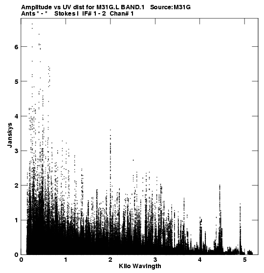 angle, the approximate noise level in prefixed units of Jansky, and a