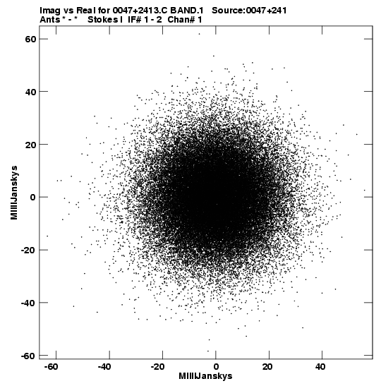 angle, the approximate noise level in prefixed units of Jansky, and a