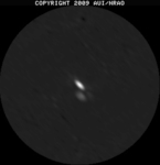 • JPEG shows a thumbnail of the pipeline image. Clicking it will show you a larger version in the browser. Both JPEG images have a square transfer function to emphasize the lower levels a bit more; do not use the JPEGs for scientific purposes (see next). As a guideline, the lighter a thumbnail, the less difference between the peak flux density and the rms noise level, i.e., don't expect to see too much in in light gray images, especially if the rms noise given in the next column is in the order of microJy or less. On the other hand, dark images have a strong source in there somewhere.. (try looking in the center of the image).