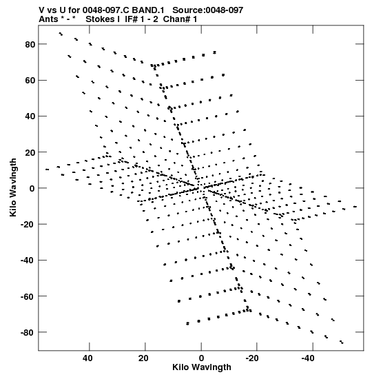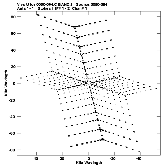 • Links is a collection of links that will show you the GIF uv-coverage and visibility plot for this data set in pop-up windows. See the README file on how to interpret these plots. They'll also get you to the project pipelining scripts and information log files as well as the full multi-source archive data on this project.