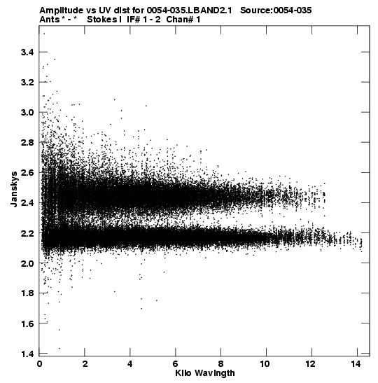 • Links is a collection of links that will show you the GIF uv-coverage and visibility plot for this data set in pop-up windows. See the README file on how to interpret these plots. They'll also get you to the project pipelining scripts and information log files as well as the full multi-source archive data on this project.