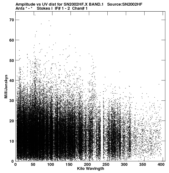 the calibrated single source uv FITS file and it's size (in red).