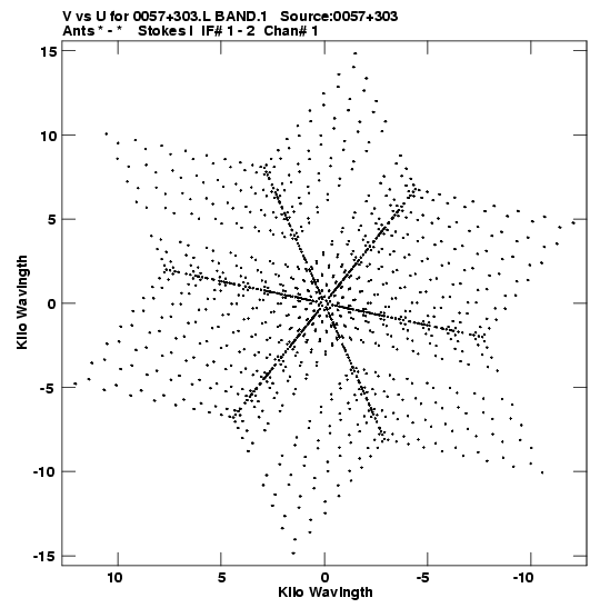 • Links is a collection of links that will show you the GIF uv-coverage and visibility plot for this data set in pop-up windows. See the README file on how to interpret these plots. They'll also get you to the project pipelining scripts and information log files as well as the full multi-source archive data on this project.