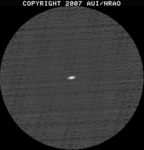 • JPEG shows a thumbnail of the pipeline image. Clicking it will show you a larger version in the browser. Both JPEG images have a square transfer function to emphasize the lower levels a bit more; do not use the JPEGs for scientific purposes (see next). As a guideline, the lighter a thumbnail, the less difference between the peak flux density and the rms noise level, i.e., don't expect to see too much in in light gray images, especially if the rms noise given in the next column is in the order of microJy or less. On the other hand, dark images have a strong source in there somewhere.. (try looking in the center of the image).