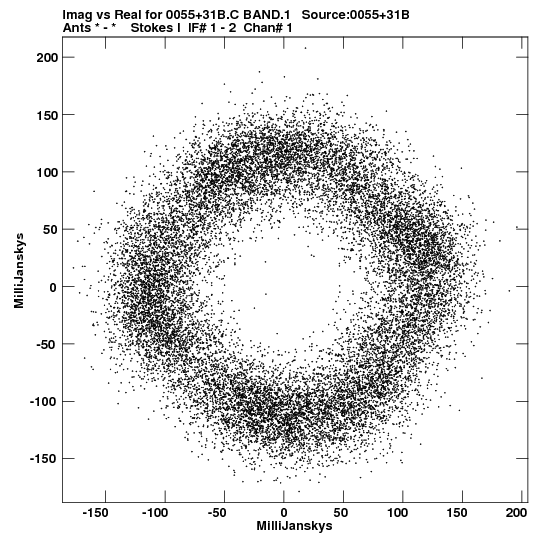 angle, the approximate noise level in prefixed units of Jansky, and a