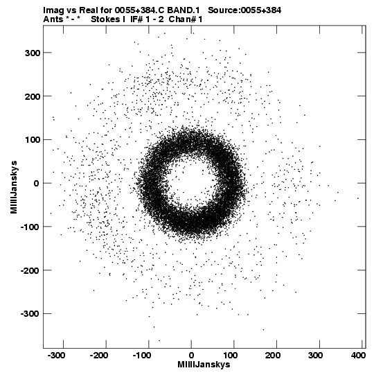 angle, the approximate noise level in prefixed units of Jansky, and a