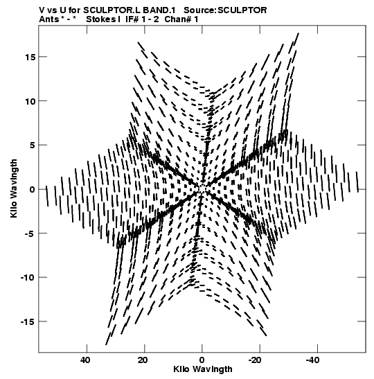 • Links is a collection of links that will show you the GIF uv-coverage and visibility plot for this data set in pop-up windows. See the README file on how to interpret these plots. They'll also get you to the project pipelining scripts and information log files as well as the full multi-source archive data on this project.