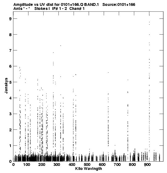 • Links is a collection of links that will show you the GIF uv-coverage and visibility plot for this data set in pop-up windows. See the README file on how to interpret these plots. They'll also get you to the project pipelining scripts and information log files as well as the full multi-source archive data on this project.