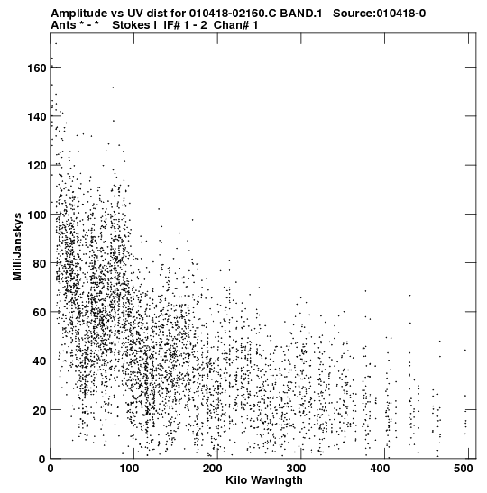 angle, the approximate noise level in prefixed units of Jansky, and a