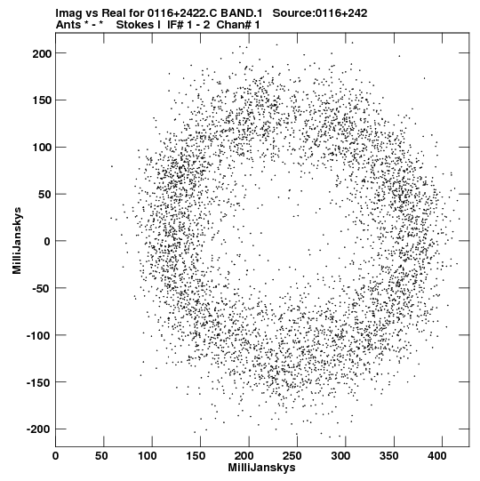 • Links is a collection of links that will show you the GIF uv-coverage and visibility plot for this data set in pop-up windows. See the README file on how to interpret these plots. They'll also get you to the project pipelining scripts and information log files as well as the full multi-source archive data on this project.
