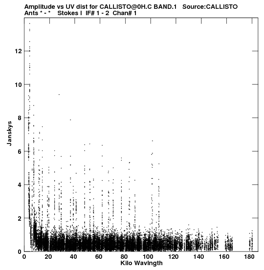 angle, the approximate noise level in prefixed units of Jansky, and a