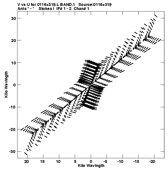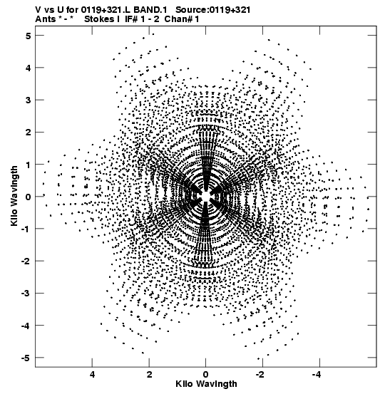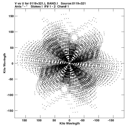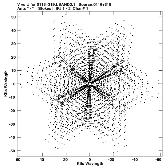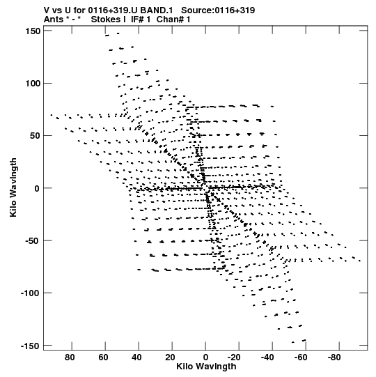• Links is a collection of links that will show you the GIF uv-coverage and visibility plot for this data set in pop-up windows. See the README file on how to interpret these plots. They'll also get you to the project pipelining scripts and information log files as well as the full multi-source archive data on this project.