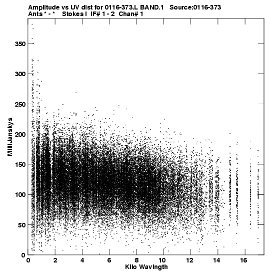 the calibrated single source uv FITS file and it's size (in red).