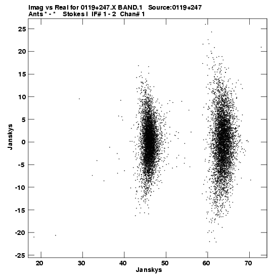 • Links is a collection of links that will show you the GIF uv-coverage and visibility plot for this data set in pop-up windows. See the README file on how to interpret these plots. They'll also get you to the project pipelining scripts and information log files as well as the full multi-source archive data on this project.