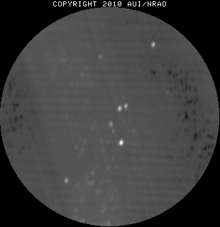 angle, the approximate noise level in prefixed units of Jansky, and a