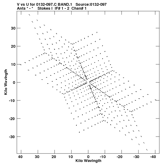 • Links is a collection of links that will show you the GIF uv-coverage and visibility plot for this data set in pop-up windows. See the README file on how to interpret these plots. They'll also get you to the project pipelining scripts and information log files as well as the full multi-source archive data on this project.
