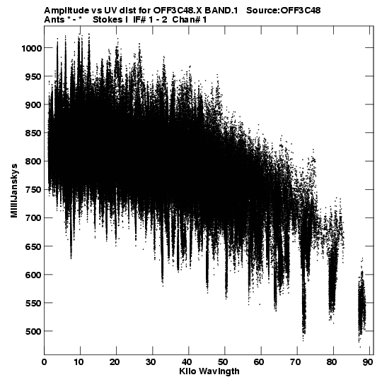 angle, the approximate noise level in prefixed units of Jansky, and a