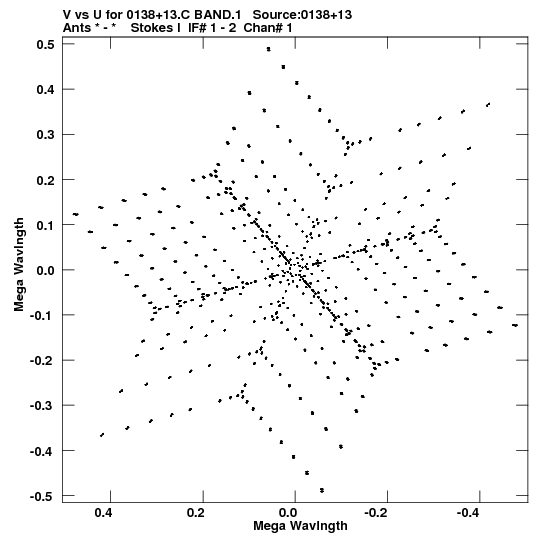 • Links is a collection of links that will show you the GIF uv-coverage and visibility plot for this data set in pop-up windows. See the README file on how to interpret these plots. They'll also get you to the project pipelining scripts and information log files as well as the full multi-source archive data on this project.