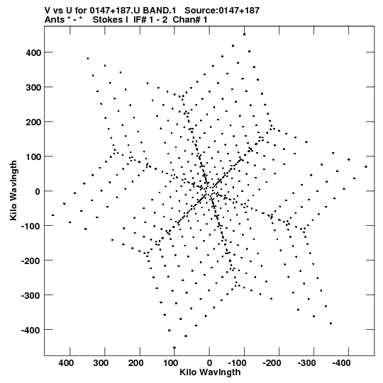 • Links is a collection of links that will show you the GIF uv-coverage and visibility plot for this data set in pop-up windows. See the README file on how to interpret these plots. They'll also get you to the project pipelining scripts and information log files as well as the full multi-source archive data on this project.