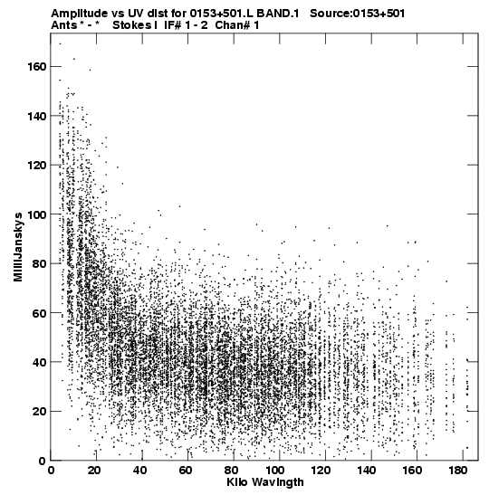 • Links is a collection of links that will show you the GIF uv-coverage and visibility plot for this data set in pop-up windows. See the README file on how to interpret these plots. They'll also get you to the project pipelining scripts and information log files as well as the full multi-source archive data on this project.