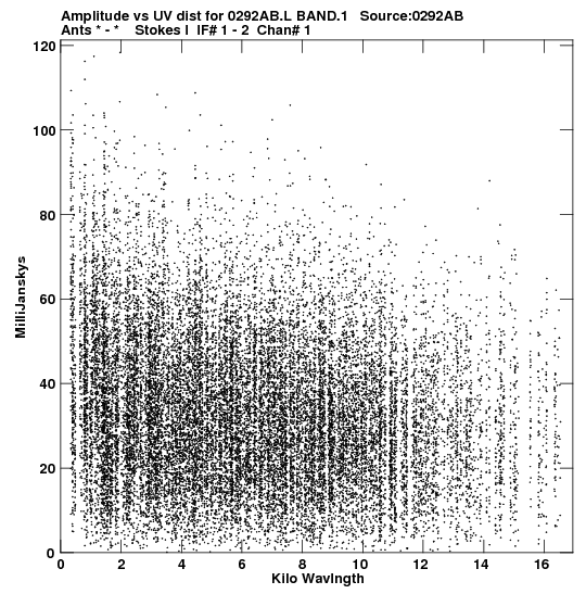 angle, the approximate noise level in prefixed units of Jansky, and a