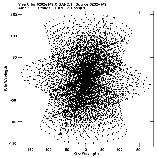 • Links is a collection of links that will show you the GIF uv-coverage and visibility plot for this data set in pop-up windows. See the README file on how to interpret these plots. They'll also get you to the project pipelining scripts and information log files as well as the full multi-source archive data on this project.