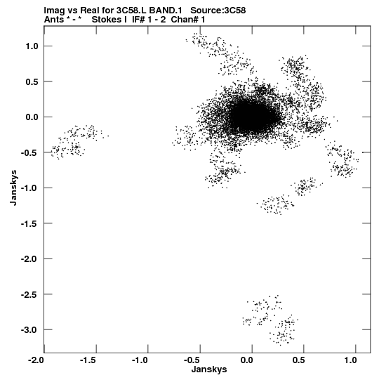 • Links is a collection of links that will show you the GIF uv-coverage and visibility plot for this data set in pop-up windows. See the README file on how to interpret these plots. They'll also get you to the project pipelining scripts and information log files as well as the full multi-source archive data on this project.