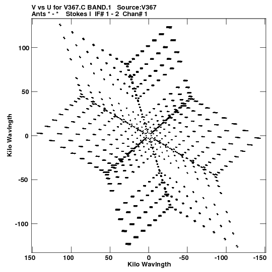 • Links is a collection of links that will show you the GIF uv-coverage and visibility plot for this data set in pop-up windows. See the README file on how to interpret these plots. They'll also get you to the project pipelining scripts and information log files as well as the full multi-source archive data on this project.