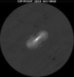 • JPEG shows a thumbnail of the pipeline image. Clicking it will show you a larger version in the browser. Both JPEG images have a square transfer function to emphasize the lower levels a bit more; do not use the JPEGs for scientific purposes (see next). As a guideline, the lighter a thumbnail, the less difference between the peak flux density and the rms noise level, i.e., don't expect to see too much in in light gray images, especially if the rms noise given in the next column is in the order of microJy or less. On the other hand, dark images have a strong source in there somewhere.. (try looking in the center of the image).