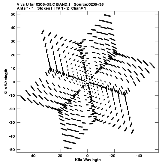 • Links is a collection of links that will show you the GIF uv-coverage and visibility plot for this data set in pop-up windows. See the README file on how to interpret these plots. They'll also get you to the project pipelining scripts and information log files as well as the full multi-source archive data on this project.