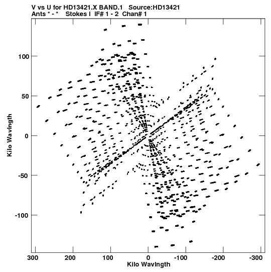 • Links is a collection of links that will show you the GIF uv-coverage and visibility plot for this data set in pop-up windows. See the README file on how to interpret these plots. They'll also get you to the project pipelining scripts and information log files as well as the full multi-source archive data on this project.