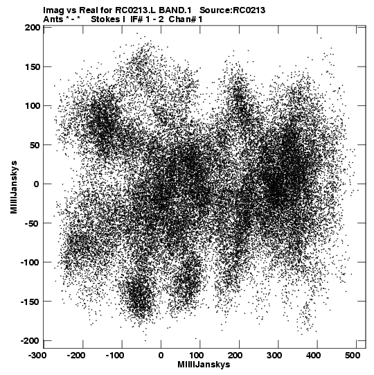 angle, the approximate noise level in prefixed units of Jansky, and a
