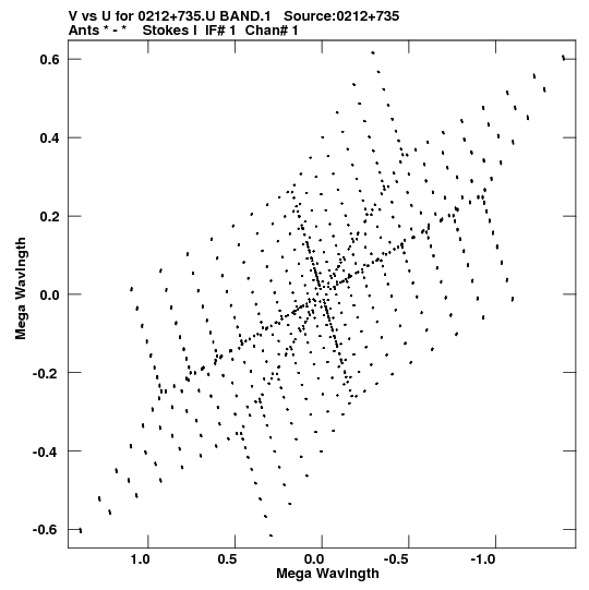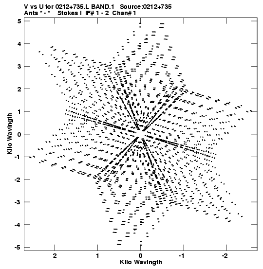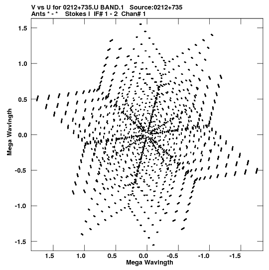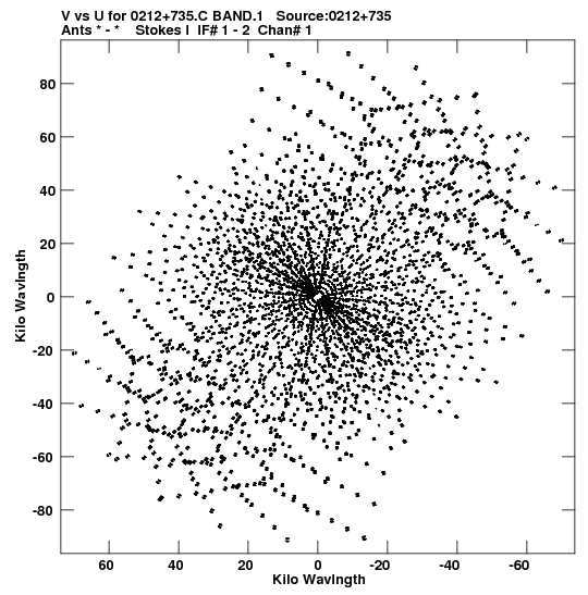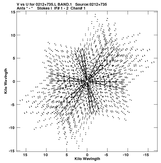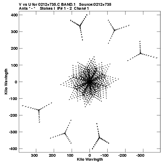 • Links is a collection of links that will show you the GIF uv-coverage and visibility plot for this data set in pop-up windows. See the README file on how to interpret these plots. They'll also get you to the project pipelining scripts and information log files as well as the full multi-source archive data on this project.