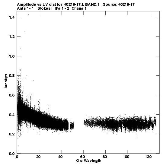 angle, the approximate noise level in prefixed units of Jansky, and a