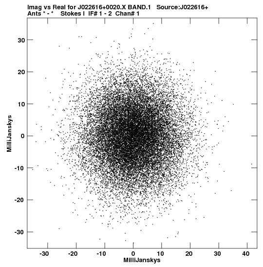 angle, the approximate noise level in prefixed units of Jansky, and a