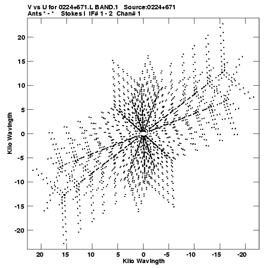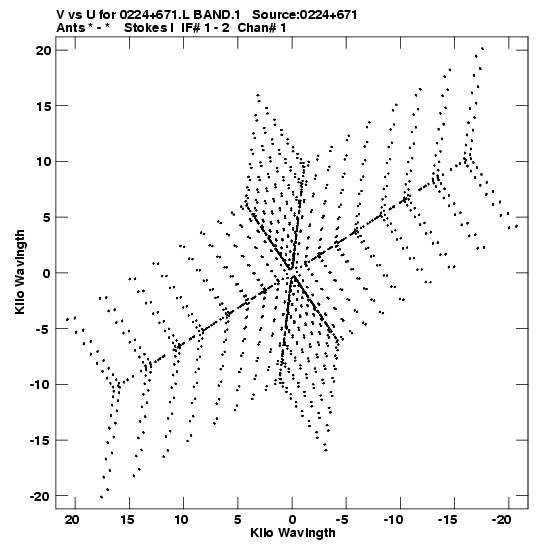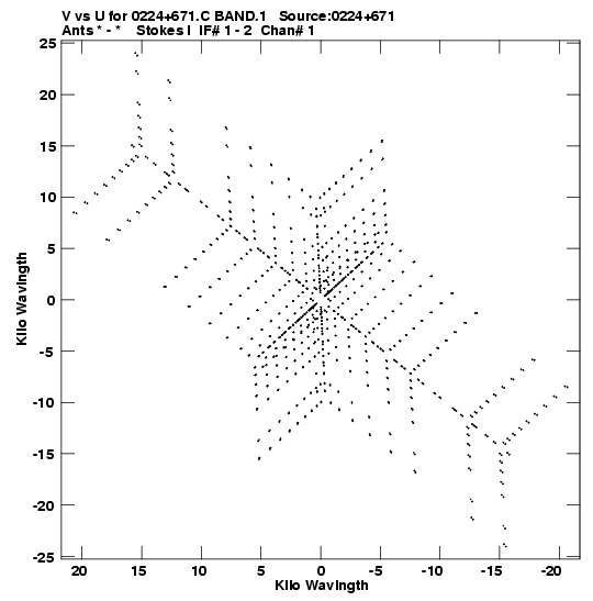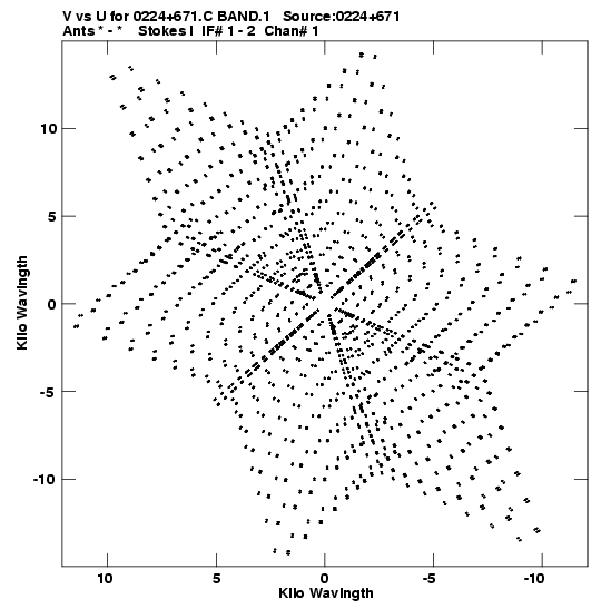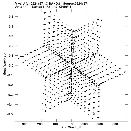 • Links is a collection of links that will show you the GIF uv-coverage and visibility plot for this data set in pop-up windows. See the README file on how to interpret these plots. They'll also get you to the project pipelining scripts and information log files as well as the full multi-source archive data on this project.